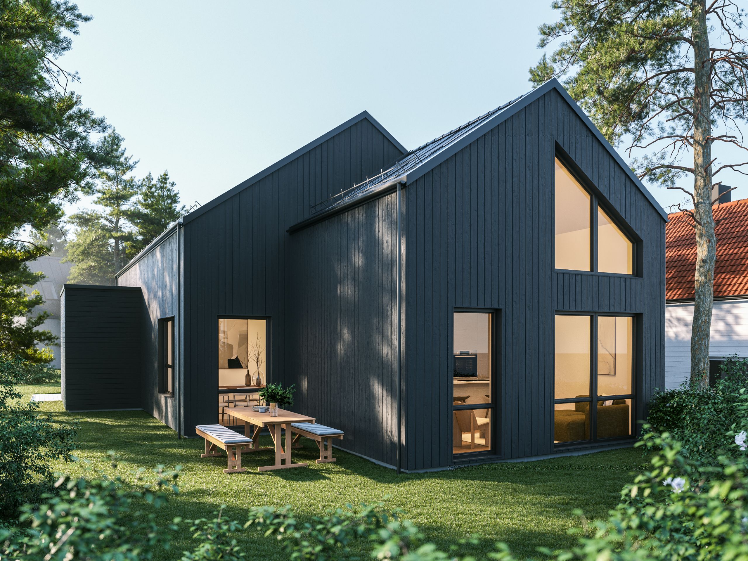 Boligen får en moderne og tidløs utforming — stemningsfull med store vinduer. Innvendig møter du en smart planlagt og velutstyrt familiebolig stilfullt utformet av interiørarkitektene Kaya & Co. Her fins bla. et lekkert kjøkken mot en dagligstue der taket strekker seg to etasjer høyt og har åpning til tv-stuen i andre etasje.